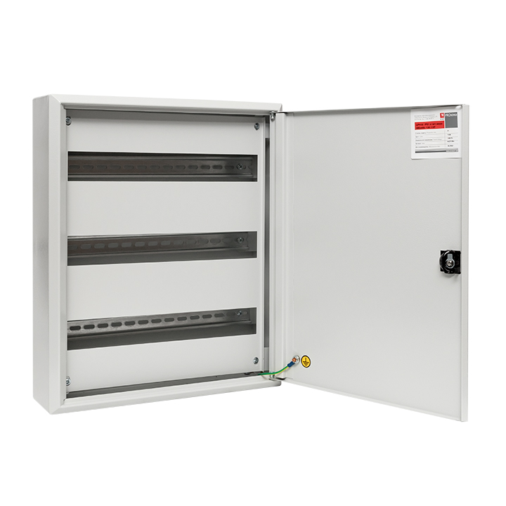 Щиты распределительные металлические серии ЩРН и ЩРВ предназначены для установки модульного оборудования. Электрический щит имеет сварной корпус и в максимальной комплектации позволяет установить девяносто одномодульных автоматических выключателей. Сварные швы и кромки металла обработаны и не имеют острых краев, способных повредить изоляцию проводов или руки монтажников. По способу установки изделия разделяются на ЩРН – навесные и ЩРВ – встраиваемые. Для покраски применяется высококачественное порошковое покрытие RAL-7035, обладающее высокой устойчивостью к внешним воздействиям. Применение уплотняющего материала, который наносится на дверку в горячем жидком виде и в процессе полимеризации приобретает высокие характеристики по износостойкост