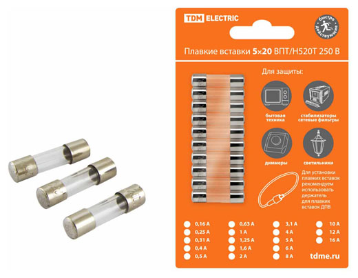 Плавкая вставка ВПБ6-5 0,5А 250В TDM упак (10 шт.)