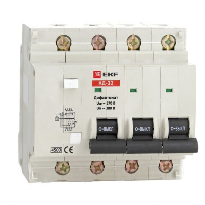 Дифференциальный автомат АД-32 4P 40А/30мА (характеристика C, тип AC) 4,5кА EKF