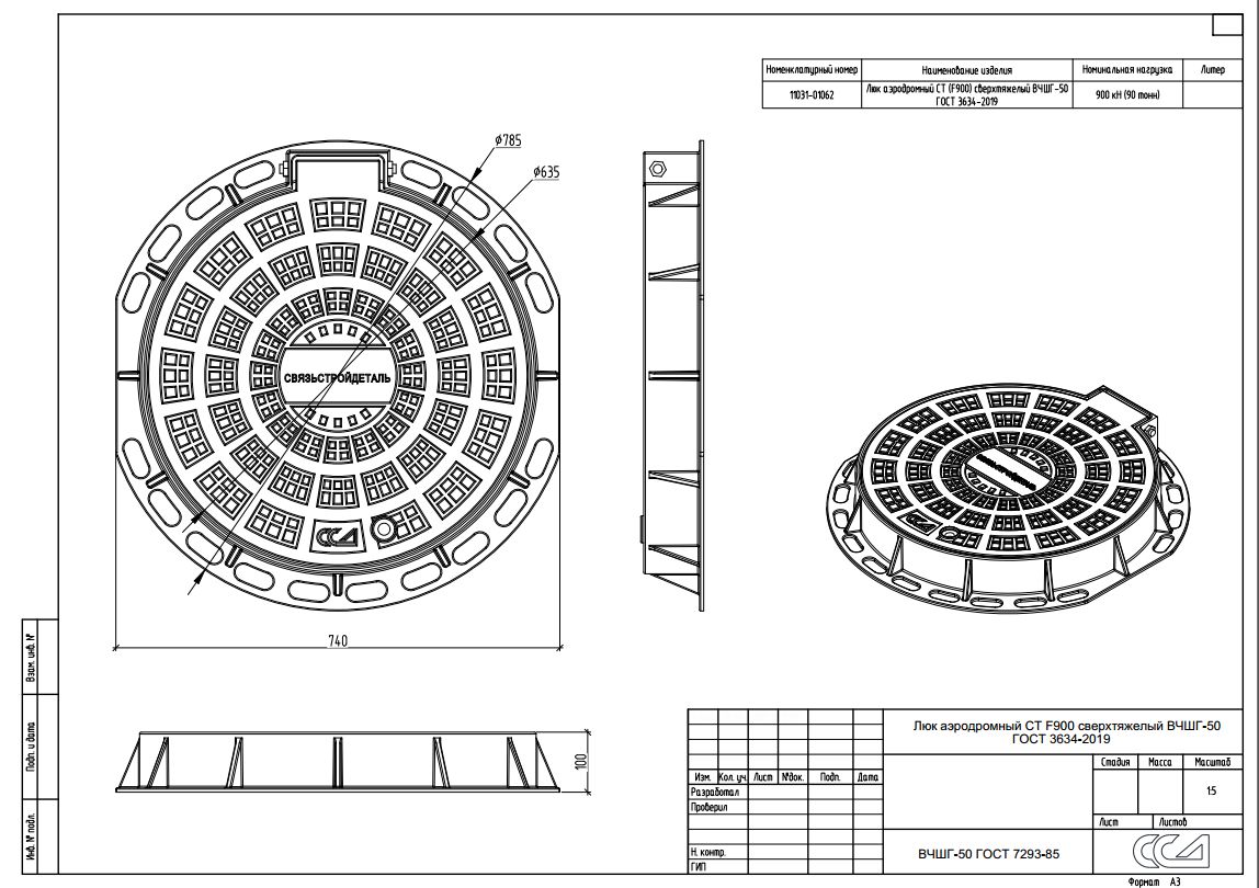Люк аэродромный CТ(F900) сверхтяжелый ВЧШГ-50 ГОСТ 3634-2019