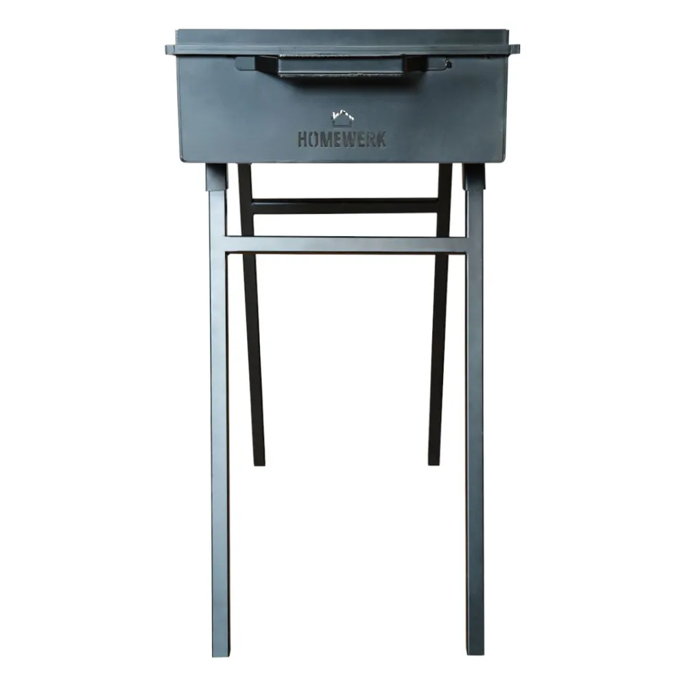 Мангал оснащён съёмными ножками, что облегчает транспортировку и хранение. Комфортная высота мангала (чуть ниже обеденного стола) позволяет удобно готовить пищу, не наклоняясь.