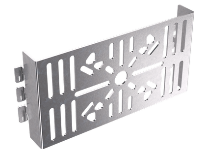 Для построения сложных кабельных трасс на основе системы проволочных лотков "F5 Combitech" применяются специальные аксессуары. Пластина предназначена для организации подвеса проволочного лотка на шпильке. Чтобы организовать подвес, по центру лотка монтируется одна шпилька. Для организации каждого подвеса потребуется также две гайки с насечкой, препятстующей отвинчиванию, и две пластина. Пластина позволяет осуществлять подвес к потолку лотка шириной до 300 мм включительно. Пластина изготовлена из нержавеющей стали - материала, отличающегося высокой коррозионной устойчивостью и стойкостью к воздействию как агрессивных сред, так и химикатов.