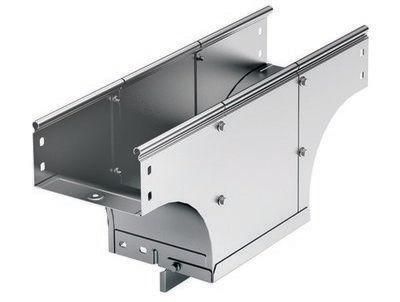 При построении кабельной трассы чаще всего требуется организовать ее изгибы и ответвления в горизонтальной и/или вертикальной плоскости. Для этого в системе "S5 Combitech" применяются аксессуары. Крышка-ответвитель TS используется, если нужно организовать сложное ответвление кабельной трассы. Она имеет Т-образную форму. При ответвлении обеспечивается плавный изгиб, что предохраняет кабель от повреждения. Исполнение аксессуара – "сталь, оцинкованная по методу Сендзимира". Ширина лотка в горизонтальном направлении – 300 мм, в вертикальном – 300 мм, высота боковой стенки – 50 мм. Применение комплектных аксессуаров облегчает расчет числа необходимых элементов для монтажа – в комплект уже входят соединительные пластины и детали крепежа.