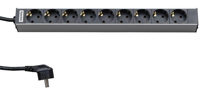 Блок розеток SHT19-9SH-2.5EU для шкафов 19дюйм горизонт. 9 универс. розеток 16А шнур 2.5м Hyperline 26449