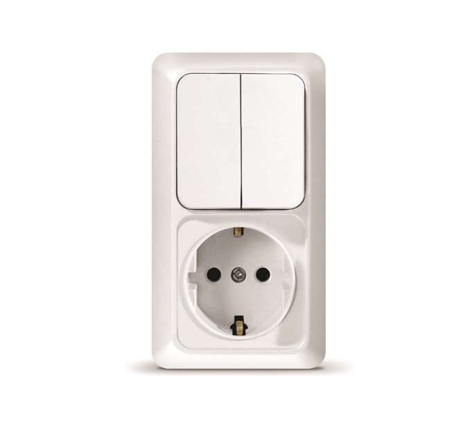 Блок ОП Олимп 2-кл. вык.+ роз. с заземл. верт. бел. UNIVersal О0040 представлен потребителю в серии "Олимп". Серия "Олимп" для открытой установки сочетает в себе функциональность с практичностью. Изделия данной серии удачно вписываются в интерьер любого помещения и производят приятное впечатление. Блок объединяет двухклавишный выключатель и розетку. Корпус представляет собой форму из пластика, белого цвета. Контактная группа изделий изготовлена из латуни. Монтируется вертикально, на глубину 48 мм, на поверхность стены. Рекомендованы для жилых помещений и административных зданий. Срок службы составляет 5 000 циклов включения/отключения.