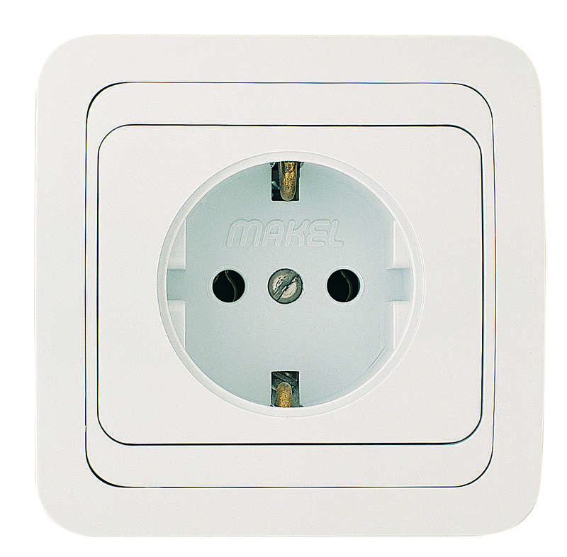 Розетка 1-м СП Mimoza 16А IP20 с заземл. пластик. основ. бел./бел. Makel 12028