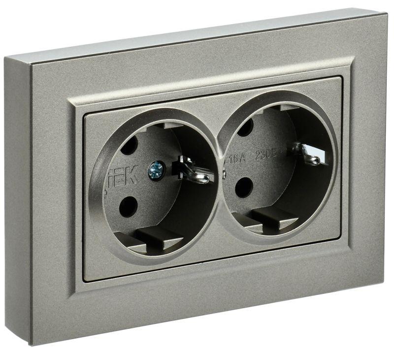 Розетка 2-м СП BRITE РС12-3-БрШ 16А в сборе с заземл. без защ. шторок шампань IEK BR-R21-16-K37-F