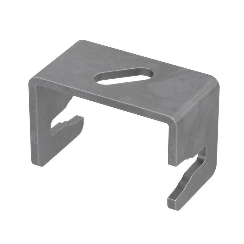 Скоба-держатель полосы используется для крепления полосы шириной 25 мм к фасаду и внутренним стенам. Максимальная толщина фиксируемой полосы - 6 мм. Материал - горячеоцинкованная сталь.