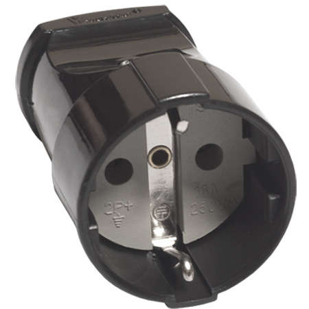Штепсель с заземл. черн. 16А 250В (еврослот) UNIVersal А1020 в корпусе черного цвета изготовлен из АБС-пластика. Токоведущие элементы внутри корпусов зафиксированы в не поддерживающем горение пластике. Крепежные элементы контактных групп позволяют подключать провод с сечением от 0,5 кв.мм до 2,5 кв.мм. В ассортименте Universal представлены штепсельные гнезда, рассчитанные на номинальные токи 10 А (без заземляющего контакта) и 16 А (с заземляющим контактом), в обычном и противоударном (с покрытием из упругого ПВХ-пластиката) исполнениях. Данный аксессуар изготовлен в обычном исполнении и не обладает особыми противоударными свойствами. Отличается надежностью и безопасностью в применении.