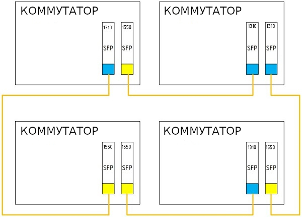 WDM SFP-модули используются (попарно), при этом передатчики и приемники этих модулей имеют разное значение длины волны.