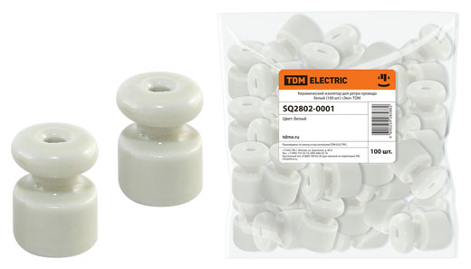 Керамический изолятор для ретро провода белый (100шт) Эко TDM