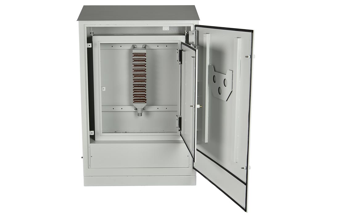 Предназначены для перехода с магистральных кабелей на распределительные кабели местных сетей. Номинальная емкость шкафа – 1200 пар.