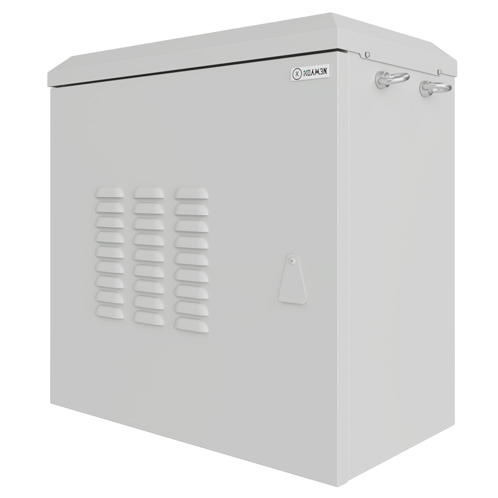Корпус выполнен из листовой стали и имеет прочную сварную конструкцию, а так же оборудован замком сувальдного типа, что говорит о высокой степени антивандальности всепогодного шкафа.