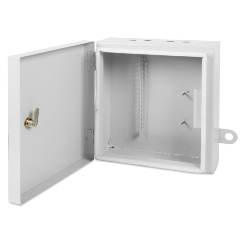 Малогабаритный антивандальный ящик предназначен для размещения оборудования PON, POE для подключения IP камер и оборудования WI-FI. В конструкции ящика предусмотрен ободок для отвода атмосферных осадков из под дверцы, этим и достигается необходимая защита оборудования. Внутри ящик имеет планку под 8 или 16 проходных розеток SC, уточняйте при заказе количесво адаптеров , крепления для кассеты.