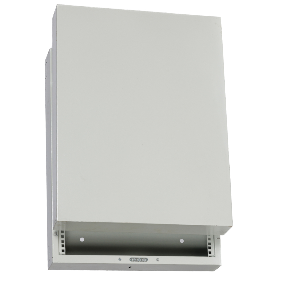 Плоский антивандальный шкаф оригинальной конструкции используется для защиты установленного сетевого, телекоммуникационного и кроссового оборудования от несанкционированного доступа и краж. Подходит для установки 19-ти дюймового оборудования, включая источники бесперебойного питания, электрические розетки и другого, подходящего по габаритам, оборудования. Шкаф антивандальный P-7 может быть установлен в подъездах, на чердаках, подвалах и других частях зданий. Эстетичность внешнего вида, наряду с надежной защитой от коррозии, достигается посредством покрытия порошково-полимерной краской серого цвета RAL 7035 (цвет покраски изделия можно изменить по предварительной договоренности с клиентом). У шкафа полностью закрытые вводы для кабеля, открываете только нужные для Вас.