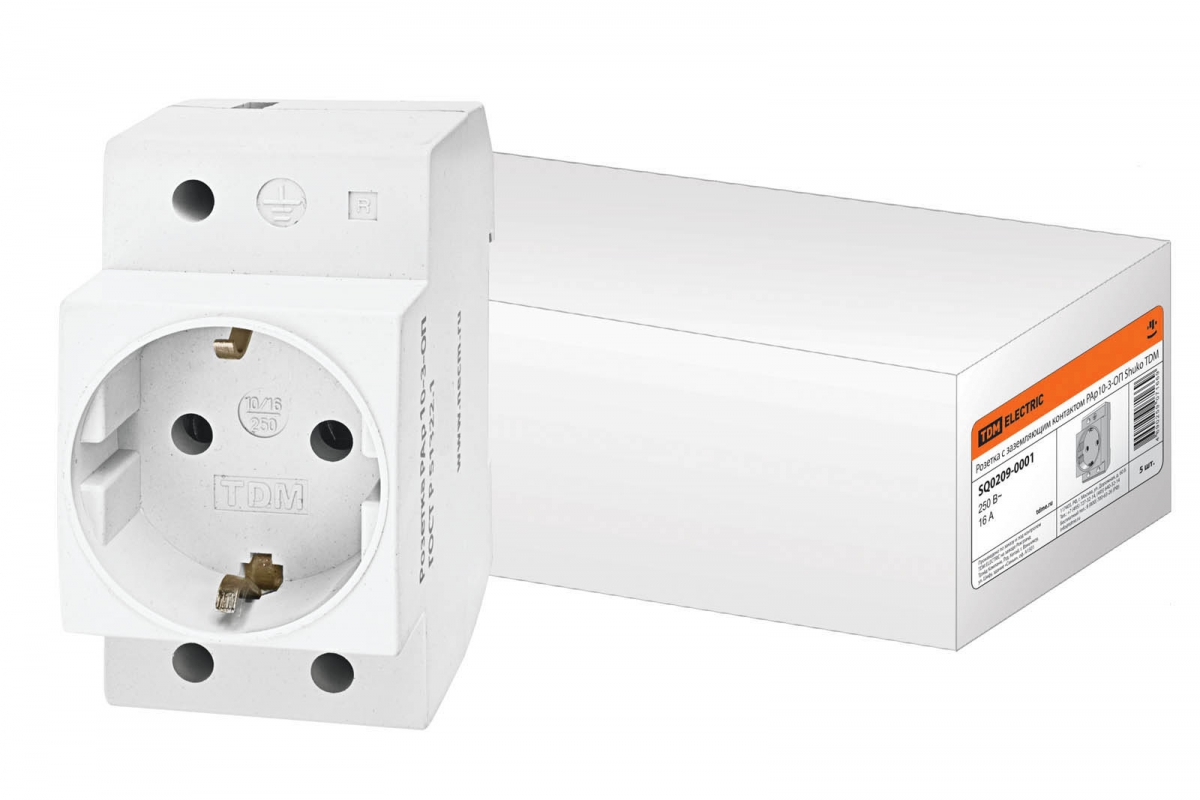 Розетка с заземляющим контактом РАр10-3-ОП Shuko TDM предназначена для установки на DIN-рейку в распределительный щит и служит для подключения электрических приборов (переносных ламп, блоков питания и т.д.) или электрического инструмента малой мощности во время профилактических и ремонтных работ в электрической сборке по месту установки.