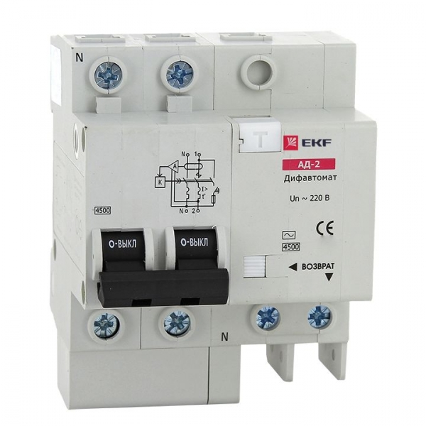 Дифференциальный автомат АД-2 50А/100мА (характеристика C, тип AC) 4,5кА EKF