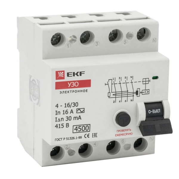Устройство защитного отключения УЗО 4P 25А/30мА (электронное) EKF