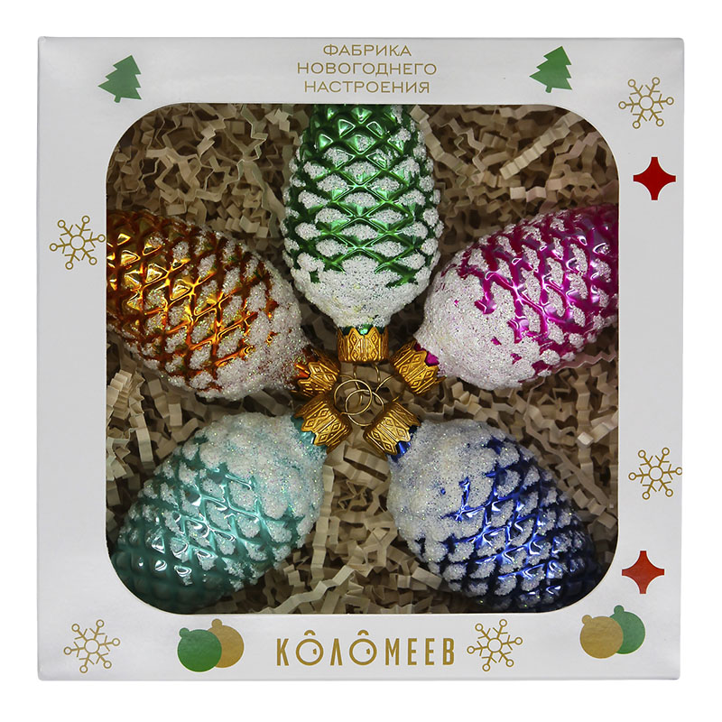 Набор елочных игрушек из стекла "Шишки в снегу" - это прекрасный выбор для украшения новогодней елки. В комплект входит пять стеклянных шишек, каждая из которых имеет размер 7 сантиметров.