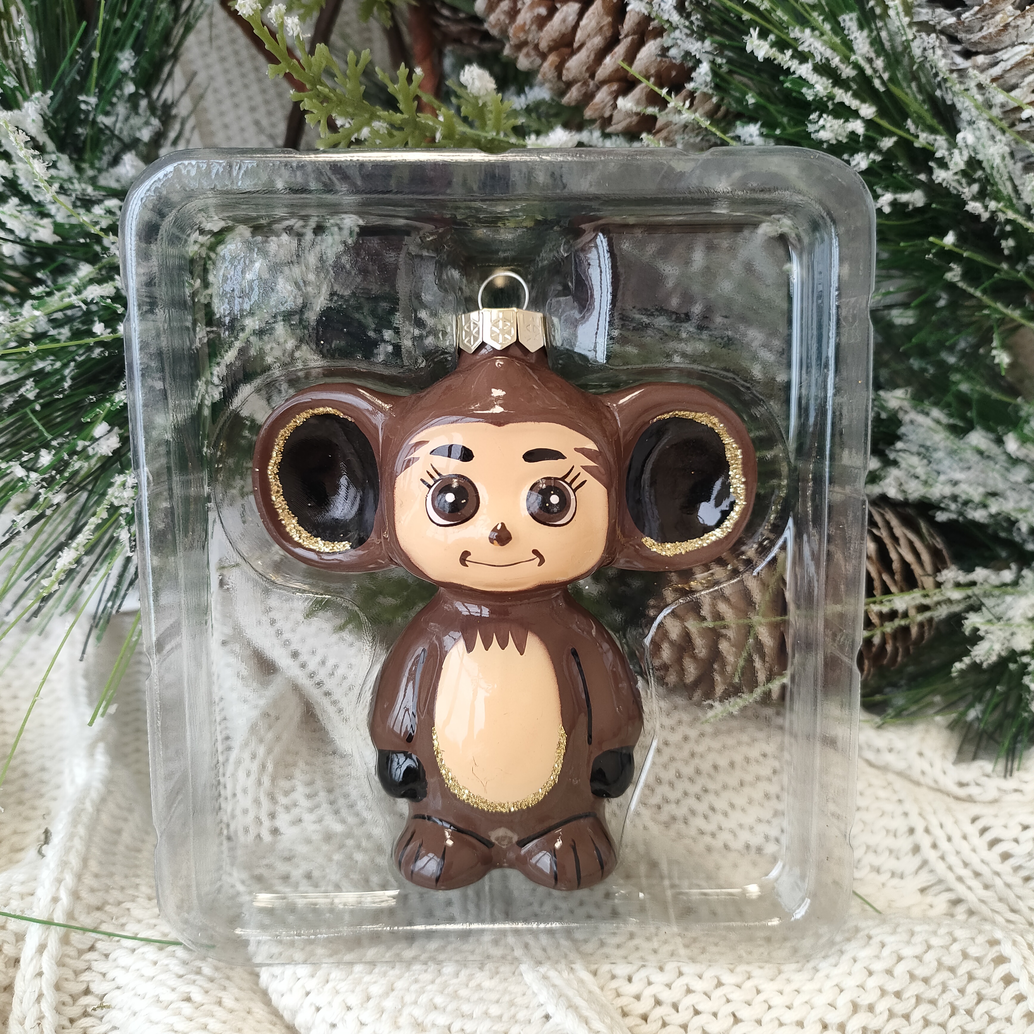 Елочная новогодняя игрушка КОЛОМЕЕВ, Чебурашка, высота 9 см, из стекла в подарочной упаковке, новогодняя елочная игрушка из стекла, добрый, весёлый и смешной, он всегда готов придти на помощь своим друзьям! А теперь он с удовольствием украсит и вашу новогоднюю ёлку!