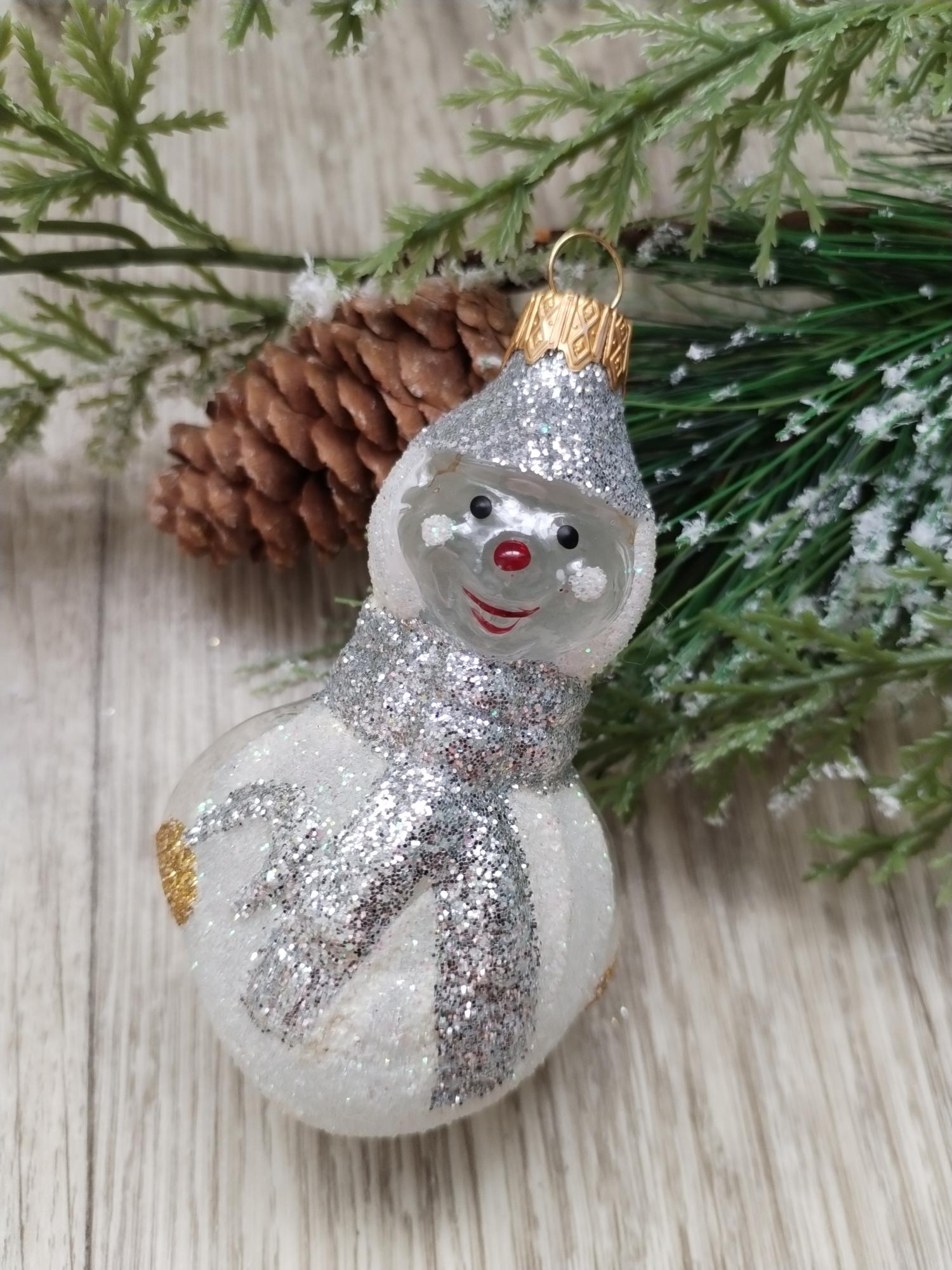 Елочная новогодняя игрушка КОЛОМЕЕВ, Снеговик с шарфом, высота 9 см.