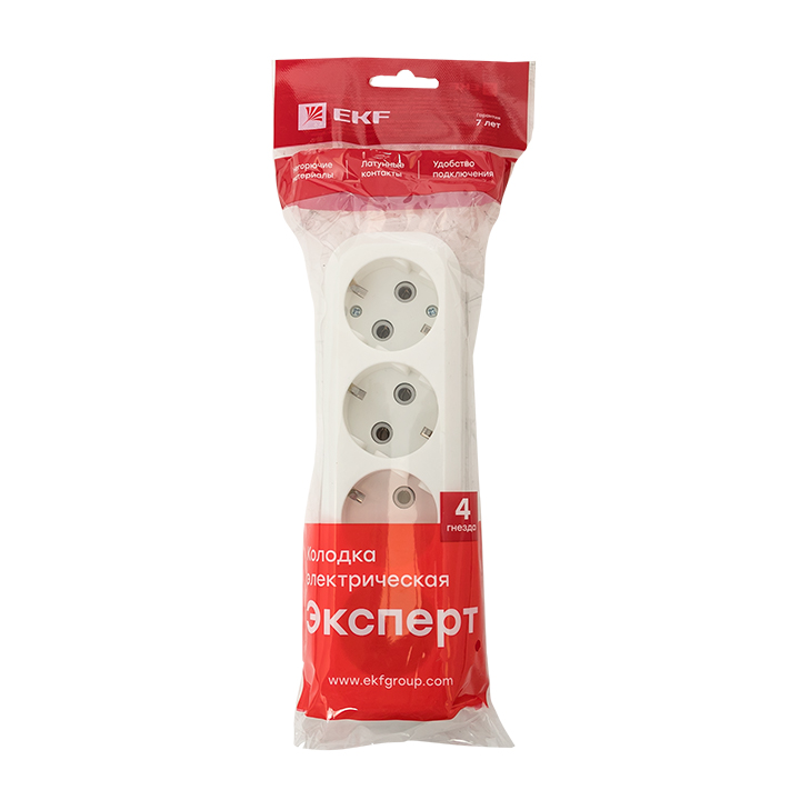 Колодка 4 гн, 16А 3,5кВт с/з Эксперт EKF PROxima