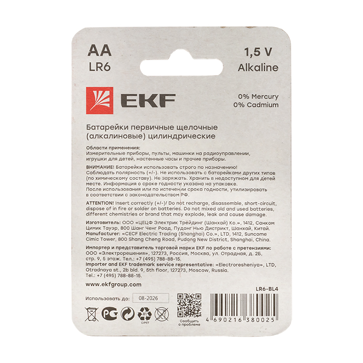 Алкалиновая батарейка типа АА(LR6) блистер 4шт, EKF