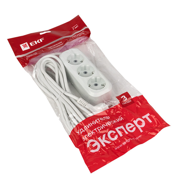 Удлинитель "Эксперт" 3 гнезда 5 метров 16А/3,5кВт с заземлением ПВС 3х1 EKF PROxima