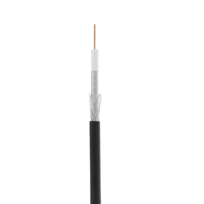 Распределительный коаксиальный кабель с центральной медной жилой, с приклеенной фольгой, оплеткой с заполнением 60%(вспененная) и полиэтиленовой оболочкой. для внешней/внутренней прокладки