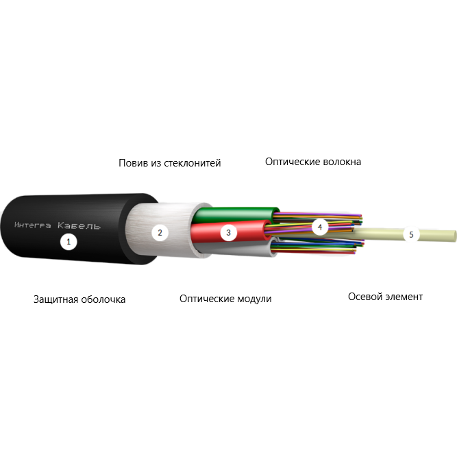 Также используется для присоединения и прикрепления к внешним несущим силовым элементам (тросам, проводам и т.п.). Применяется для автоблокировки электрифицированных железных дорог в точках с максимальной величиной потенциала электрического поля до 12 кВ. Оптический кабель содержит от 4 до 48 оптических волокон в оптических модулях, заполненных гидрофобным гелем. Повив из стеклокорвинга (стеклонитей) обеспечивает прочность к продольным нагрузкам.