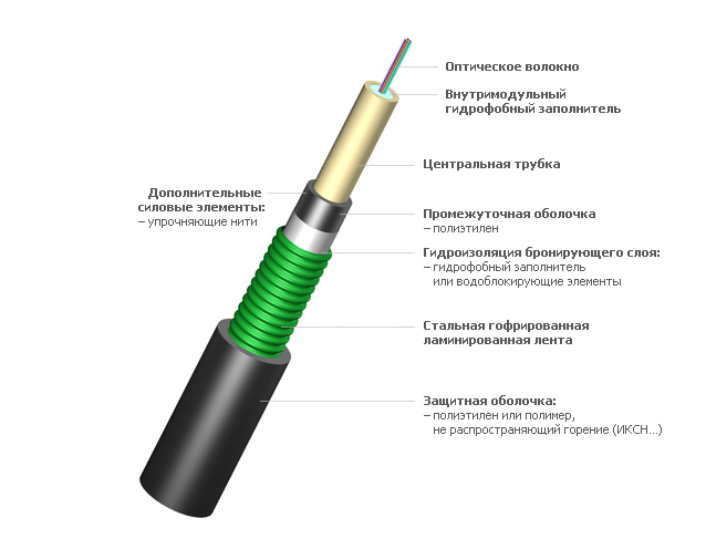 ИКС - оптический кабель для прокладки в канализацию на основе центральной трубки.