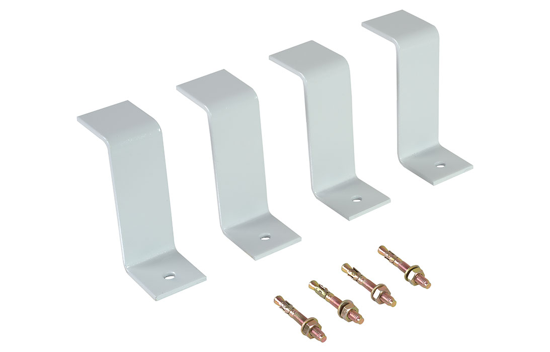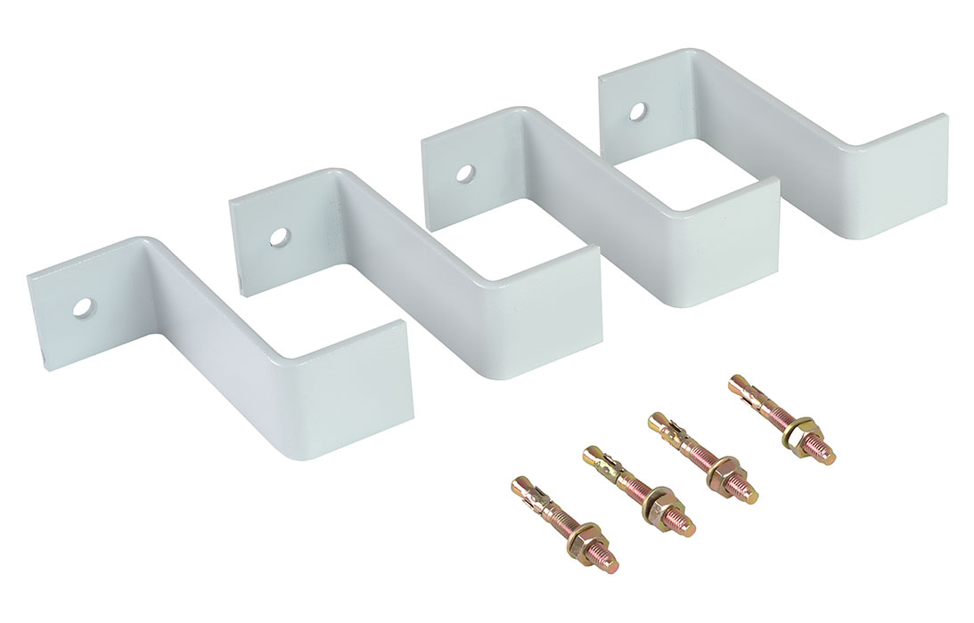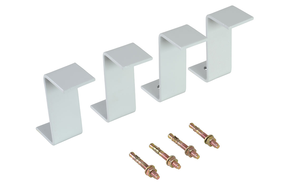 Комплект состоит из 4 металлических скоб с отверстиями, специальным образом изогнутых по форме дна камеры, и 4 клиновых анкеров для фиксации КОТ-2 к основанию. Скобы покрыты порошковой краской.
