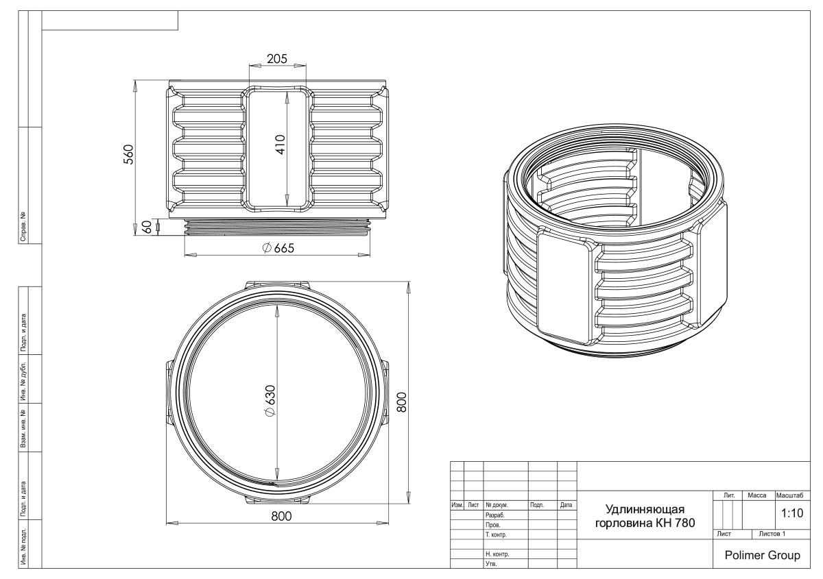 Удлиняющая секция для пластиковых колодцев КН 780, предназначенных для строительства телефонной и кабельной канализации.
