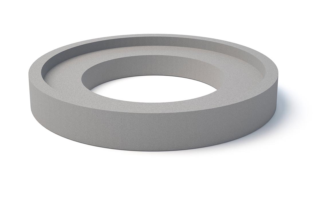 Кольцо опорное КО-ЧП имеет плоское основание и углубление в верхней части для установки корпуса люка. Данная конструкция защищает корпус люка от смещения относительно центральной оси отверстия в перекрытии колодца. Для увеличения высоты горловины колодца до проектной поверх кольца КО-ЧП могут дополнительно устанавливаться одно или несколько колец КО-Ч.