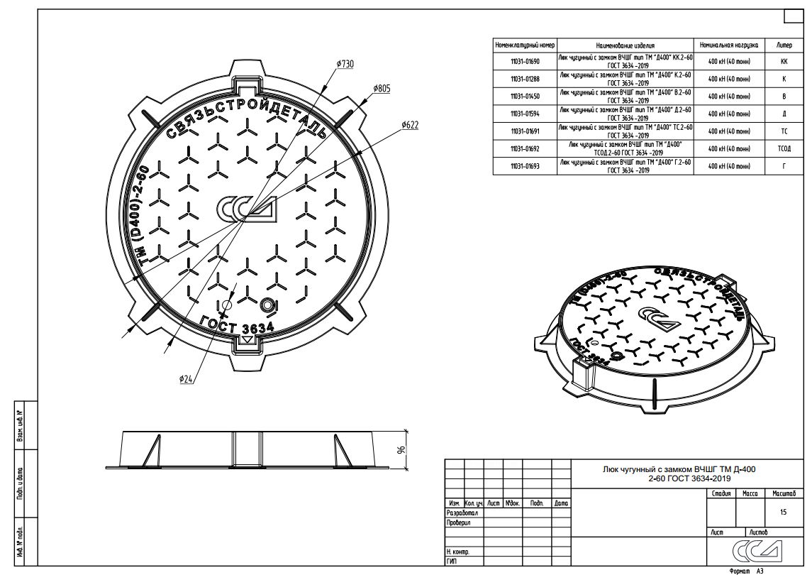 Люк чугунный с замком ВЧШГ тип ТМ "Д400" КК.2-60 ГОСТ3634