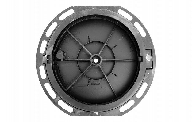 Люк круглый тяжелого типа из высокопрочного чугуна с шаровидным видом графита «ВЧШГ» состоит из корпуса и крышки с шарнирным механизмом. Крышка люка без ушек соединена с корпусом с помощью шарнирного механизма. Угол открытия крышки 112°. Крышка оснащена запорным механизмом для защиты от краж и постороннего проникновения в колодец. Запорный механизм приводится в движение с помощью торцевого ключа с накидной головкой размером 17 мм (в комплекте поставки не входит). Корпус люка оснащен Т-образной вибрационной прокладкой для более плотного прилегания крышки. Крышка имеет вентиляционное отверстие диаметром не менее 20 мм.