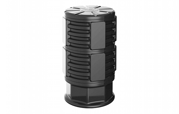 Представляет собой сборное изделие, которое состоит из основания колодца, на которое последовательно навинчены две удлиняющие секции и крышка. Основание имеет 8 прямоугольных площадок размером 230х270 мм. Каждая удлиняющая секция имеет 4 прямоугольных площадки 205х410 мм, между которыми располагаются ребра жесткости, упрочняющие конструкцию колодца. Внутренний диаметр горловины имеет отверстие диаметром 630 мм. Диаметр крышки – 780 мм.