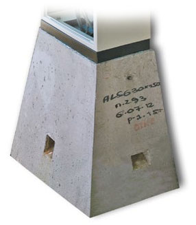 Представляет собой железобетонный блок с закладными устройствами (трубами) и четырьмя болтами на верхней площадке для крепления цоколя телекоммуникационного шкафа. Болты М16 DIN 933 выступают над поверхностью блока на 100 мм.