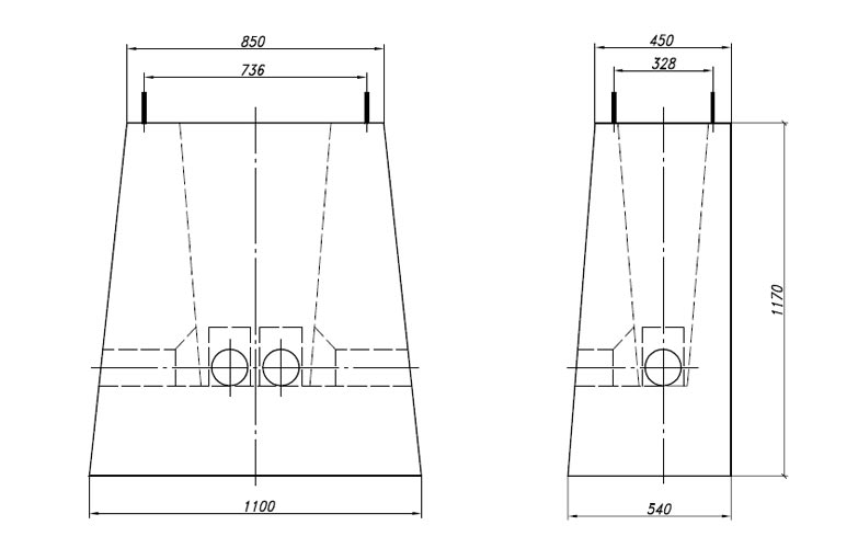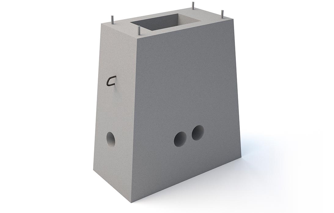 Представляет собой железобетонный блок с закладными устройствами (трубами) и четырьмя болтами на верхней площадке для крепления цоколя телекоммуникационного шкафа. Болты М10 DIN 933 выступают над поверхностью блока на 100 мм.