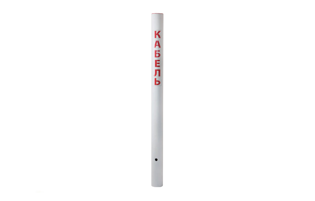 Представляет собой полую пластиковую трубу белого цвета. На противоположных сторонах столбика размещена предупреждающая информация «Не копать» и «Кабель», выполненные красным цветом. В верхней части столбик оснащён красной плоской крышкой, в нижней части предусмотрены отверстия диаметром 15 мм для установки анкера (приобретает дополнительно).