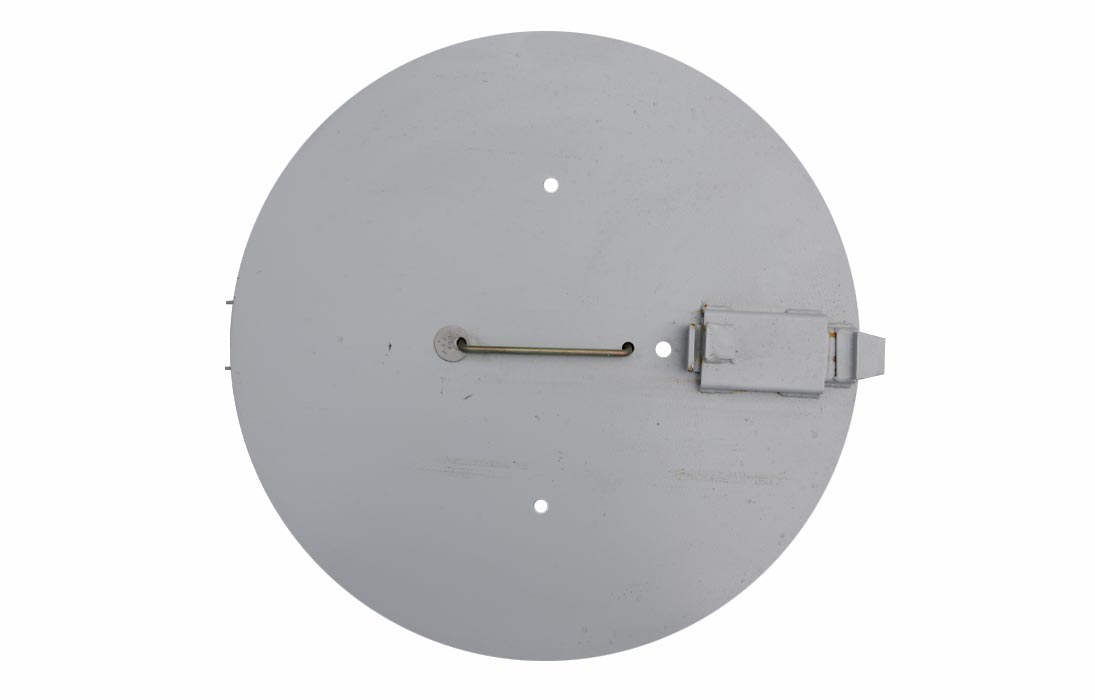 Представляет собой стальную плиту толщиной 3 мм круглой формы, оснащенную задвижкой, которая задвигается в паз корпуса люка, после чего крышка запирается специальным ключом (приобретается дополнительно). Крышка люка покрыта порошковой краской.