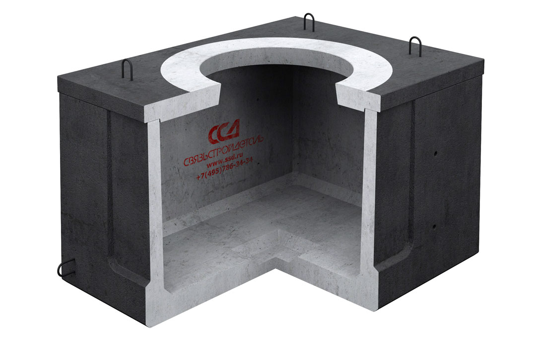 Колодец имеет в сечении прямоугольную форму и состоит из двух элементов – корпуса и плиты перекрытия с круглым отверстием диаметром 600 мм для формирования горловины с люком. В основании корпуса колодца с внутренней стороны расположена прямоугольная ниша. При необходимости, ее стенку вырезают для создания дренажа. На наружных поверхностях торцевых и боковых стен расположены глухие ниши, в пределах которых можно проделывать (высверливать) отверстия в тех местах, в которых к колодцу подходит труба.