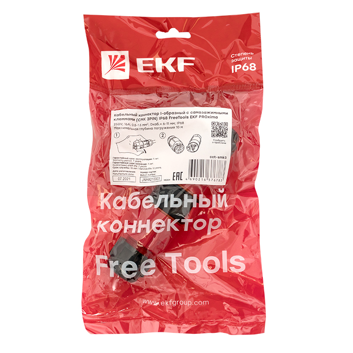Кабельный коннектор I-образный разъемный (СМК 3PIN) IP68 FreeTools EKF PROxima