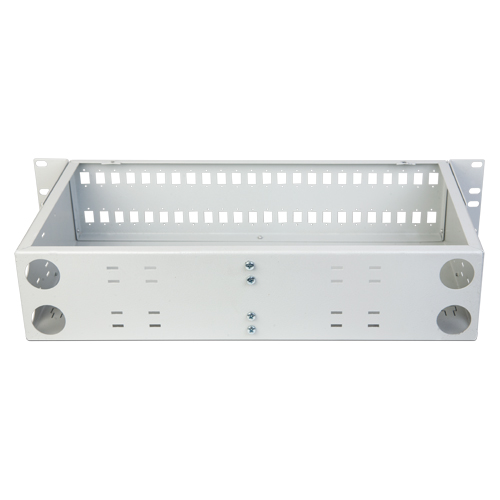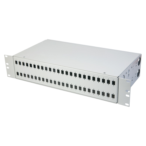 Поставляется с комплектом крепежных элементов. На передней стенке расположено 48 отверстий под SC или DLC проходных розеток. В кросс может быть установлена до 5 сплайс-кассет типа КУ-01. Кронштейны регулируются, глубина регулировки до 6 см.