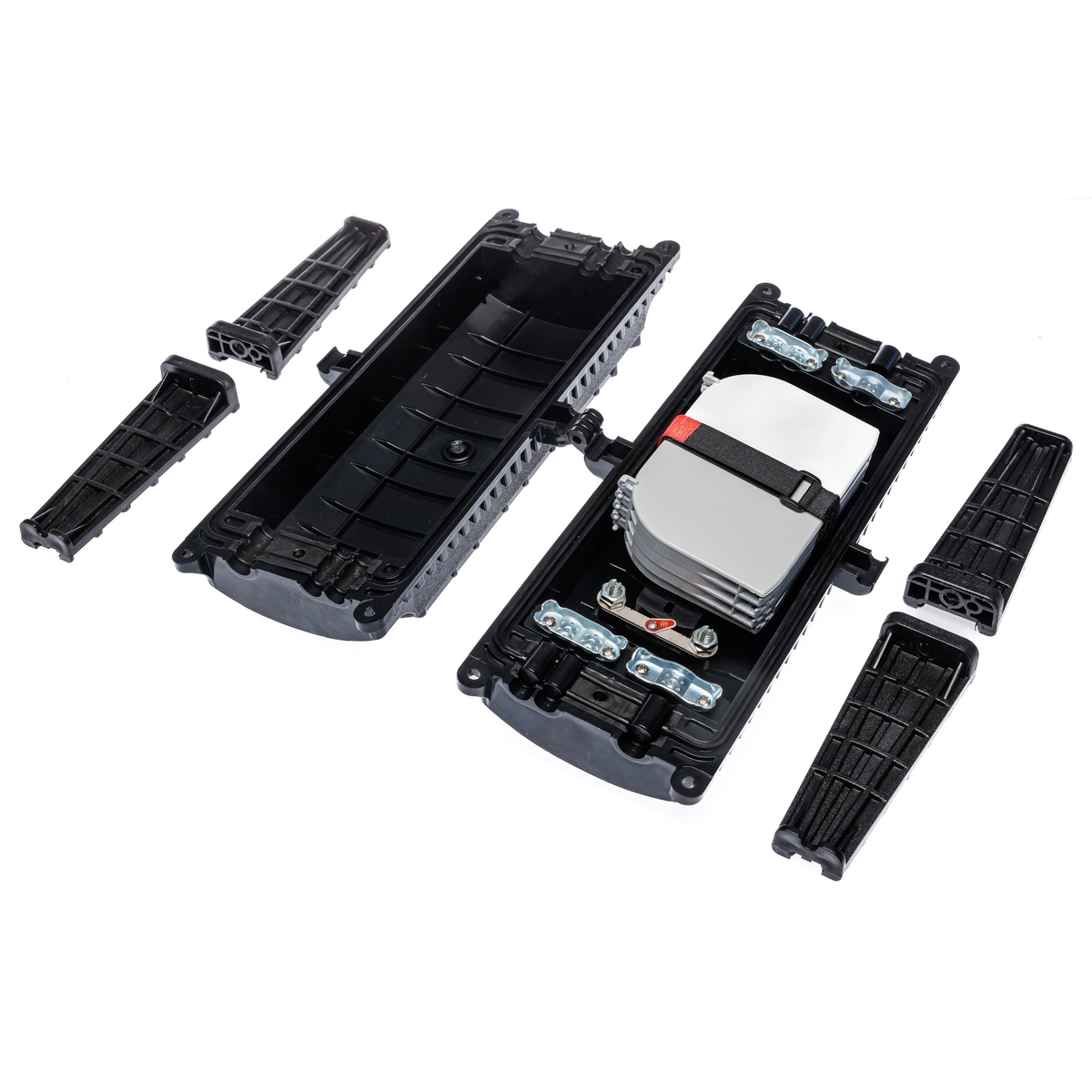 Конструкция муфты позволяет сращивать несколько кабелей вместе, а так же выводить часть волокон из кабеля на активное сетевое оборудование с использованием патч-кордов. Расширенное внутреннее пространство позволяет уложить транзитные модули с соблюдением всех допусков.