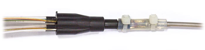 Адаптер устанавливают на центральную трубку, из которой в него вводятся очищенные от гидрофобного заполнителя оптические волокна. Отдельные трубки адаптера могут заходить на одну кассету либо на несколько кассет в муфте или оптическом кроссовом шкафу.
