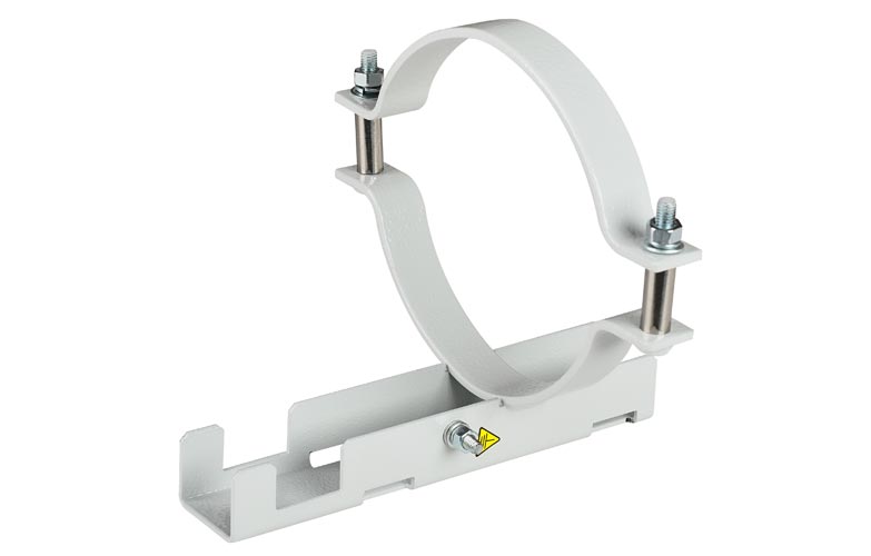 К столбовым опорам кронштейн крепится в помощью двух ленточных хомутов, а к стенам с помощью двух дюбелей и шурупов диаметром 6-8 мм. Крепежные элементы в комплект поставки не входят и приобретаются отдельно.