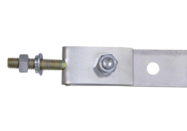 Лента с большим количеством круглых отверстий изготовлена из нержавеющей стали. При монтаже лента огибается вокруг опоры. Требуемая длина ленты регулируется путем загиба излишков по краям ленты. В торцевые отверстия, образовавшихся в результате загибов петель, вставляются резьбовые тяги, после чего петли фиксируются болтами. Тяги устанавливаются в крепёжные отверстия устройств подвески и с помощью затягивания гаек производится натяжение ленты.
