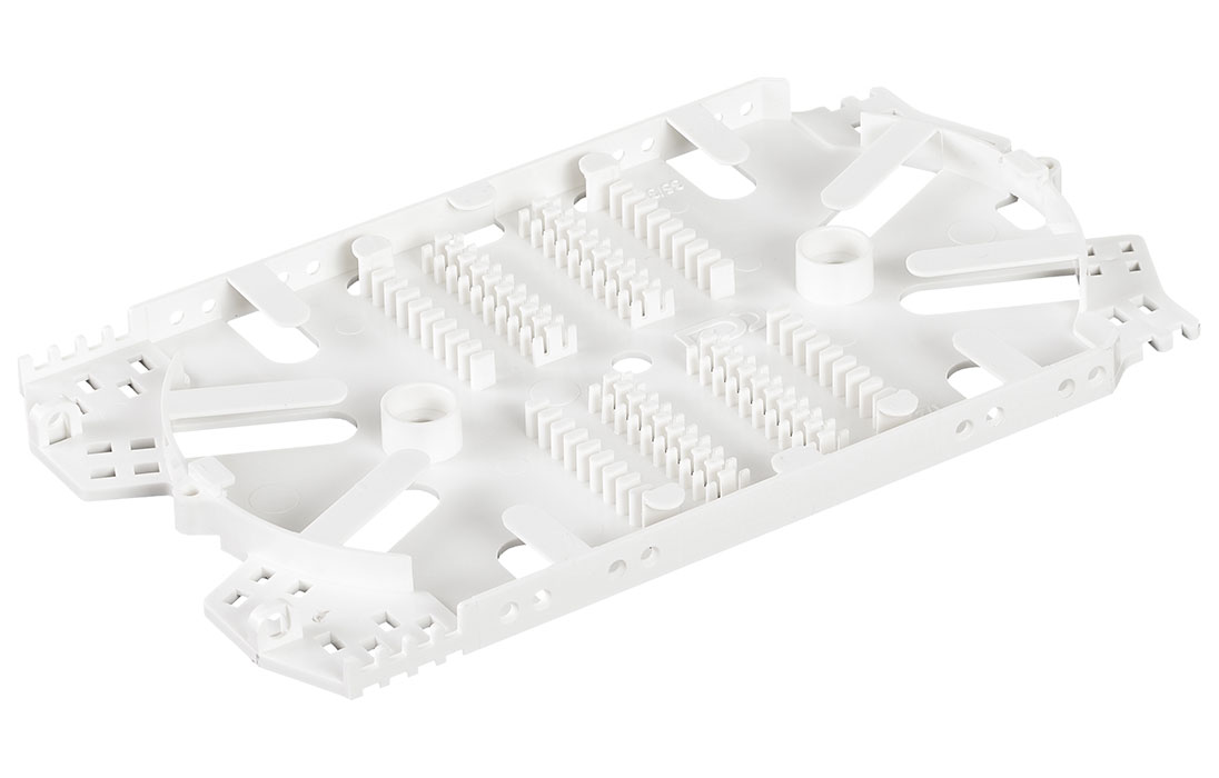 Конструкция кассеты позволяет заводить модули с ОВ с любого из четырёх углов и осуществлять изменение направления укладки запаса волокон. Свободная укладка дает возможность трехкратной переделки сварки волокна без уменьшения числа витков запаса.