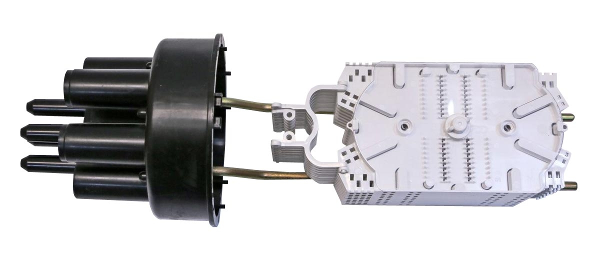 В отличие от муфты МТОК-Б1/216 данная муфта в первую очередь предназначена для размещения максимально возможного количества сварных соединений. Поэтому пространство для размещения транзитной петли оптических модулей занято дополнительным рядом кассет и выкладка петли не возможна.